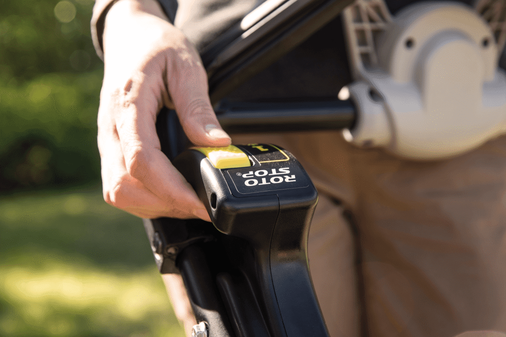 See peatab terade pöörlemise, kuid jätab mootori tööle, et saaksite kogumiskotti tühjendada või iseliikuvate mudelitega üle teeradade minna